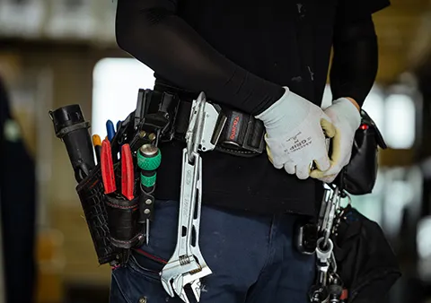 営業部で、事前調査を担当しています。案件をいただいた際に、現地に出向いて⼯期や⾒積もりを算定して技術部に受け渡す、⾔わば営業担当と技術を結ぶのが主な業務です。